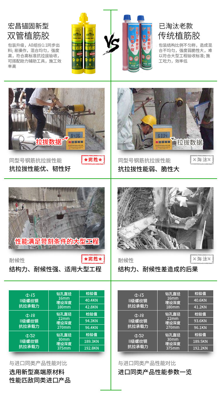 宏昌锚固新款注射式植筋胶延续传统产品的特点,在原材料和施工方面有了跳跃式的发展,那么,具体体现在哪些方面呢?